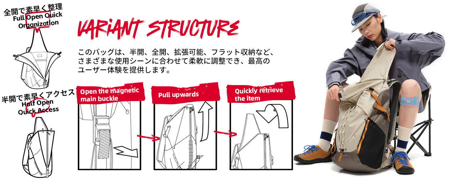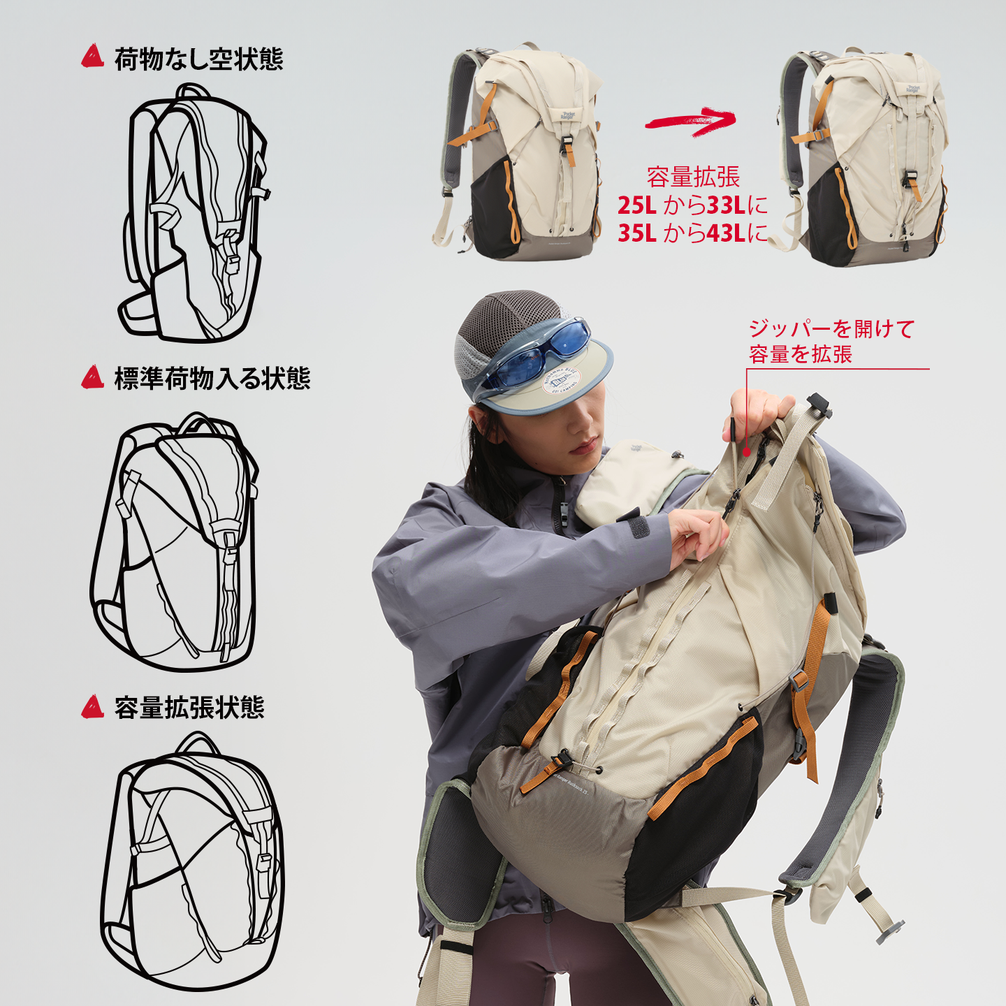 VSGOのセカンドラインとして、レジャー、撮影、ハイキングの各シーンに活用できる多用途パックバック。