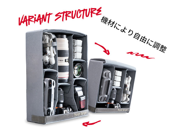 注意1:ニコンZ9、 D5、D5、キャノン1DX、R1等サイズの大きいカメラ及び三脚座付きのレンズには適用しません。注意2:25Lの場合は、インナーバッグは、半開でのご使用をおすすめします。