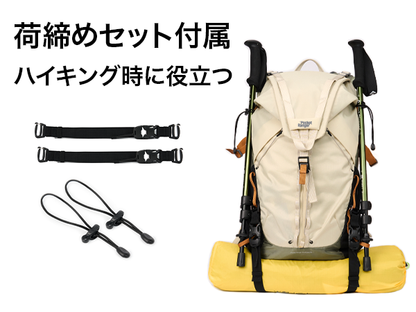 荷締めセット付きで、登山やハイキング時に欠かせないグッズ。